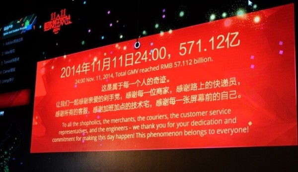 11月12日零點消息,阿里巴巴剛剛公布了“雙十一”的最終戰績:交易額突破571億元,其中移動交易額243億元,占比42.6%,物流訂單2.78億,總共有217個國家和地區參與此次雙十一。