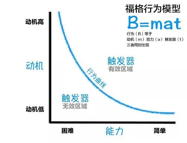 這里,B表示行為,M表示動機,A表示能力,T表示「觸發(fā)器」(trigger)。