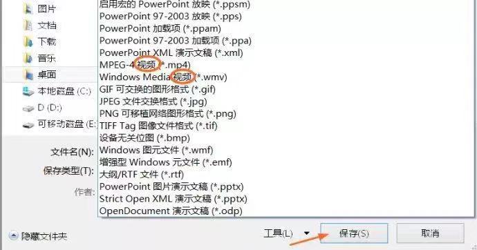 如果是PPT2013或2016,在下拉框中會顯示mp4、wmv兩種視頻格式,此時建議選擇mp4視頻;如果是PPT2010,則只有windows media視頻一種格式(即wmv)。