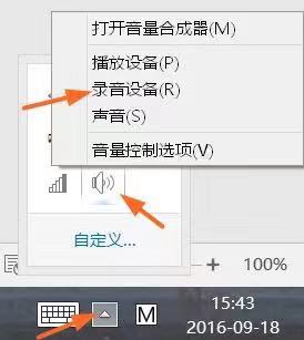 按照上圖中的步驟,打開“錄音設備”選項,就會出現如下圖所示的窗口: