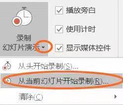 此時,我們只需先選中需要錄制或修改的PPT頁面,然后點擊“錄制幻燈片演示”按鈕旁邊的下拉箭頭,并選擇“從當前幻燈片開始錄制”選項即可(如下圖)。
