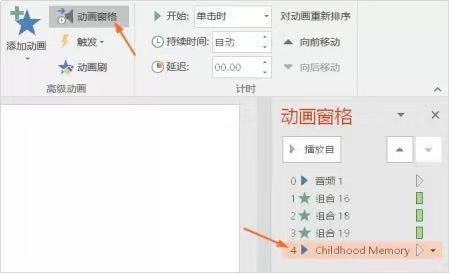 然后,打開“動畫窗格”,并在其中對該媒體的動畫進行常規設置即可: