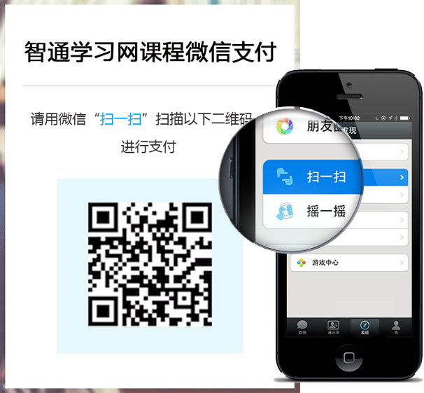 在新打開的微信支付頁面中,請用手機微信“掃一掃”功能掃描二維碼,并在手機上進行下一步操作