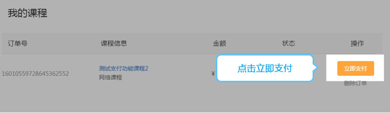 1、在登錄的狀態下,點擊個人中心,進入我的課程中,選擇你要支付的課程,點擊立即支付按鈕。